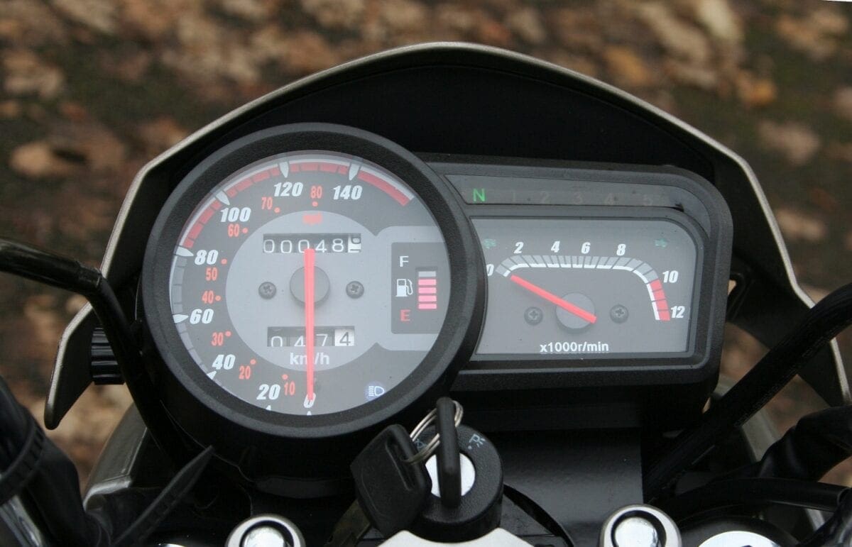 The Oregon is a bog-standard geared 125 which actually uses the same chassis as the very different-looking Assault featured in our last issue. That means an SOHC motor with balance shaft, conventional twin rear shock frame, decent quality switchgear, plus front disc, rear drum brakes. You get a helmet lock, but no underseat space and the steering lock is awkward to use, tucked away old-school style in the steering head itself. But if you like LEDs, you’ll like the Oregon, which uses them for the pilot light, running light, rear/brake light and indicators.