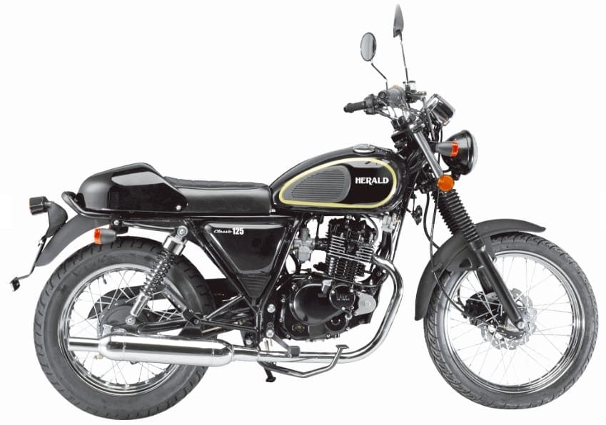 The HMC Classic looks quite retro with it’s black engine, detailing and chrome spoked wheels. 250cc version also available at £2750.
