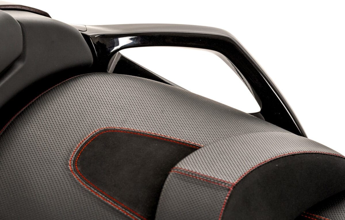 In RS trim the scooters get a low profile tinted sports screen, stainless steel foot plates, dual-texture sport seat and black wheel rims with an orange border.